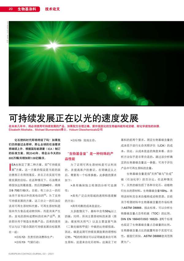 專題:水性涂料 納米纖維素:有潛力的生物基材料 高性價比的綠色納米纖維素 市場報告:水性涂料的紫外線防護性能