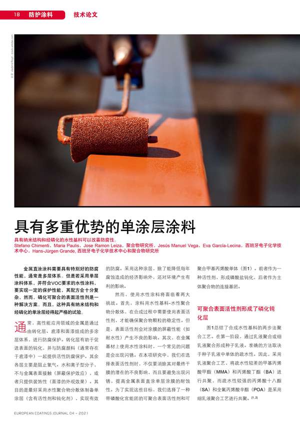 具有納米結(jié)構(gòu)和經(jīng)磷化的水性基料可以改善防腐性