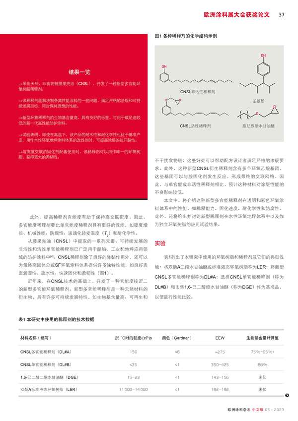 用于高性能低VOC防護(hù)涂料的可持續(xù)發(fā)展CNSL稀釋劑