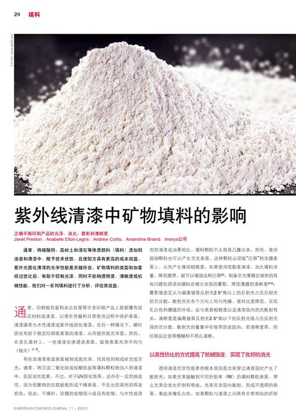 摘要:紫外線清漆中礦物填料的影響