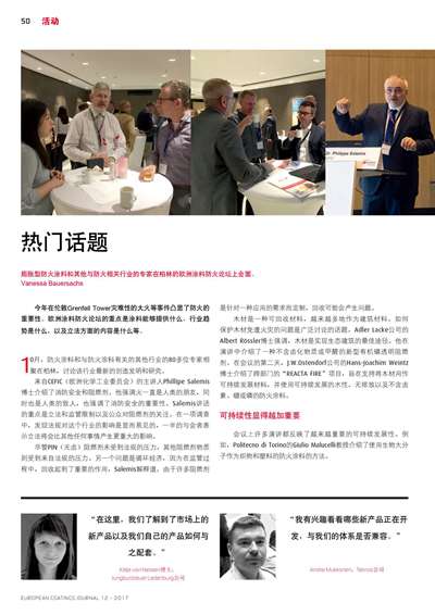 摘要:膨脹型防火涂料和其他與防火相關行業的專家在柏林的歐洲涂料防火論壇上會面。