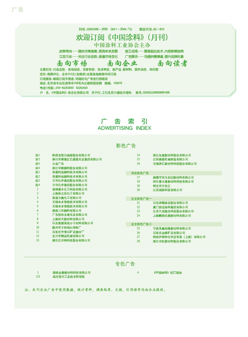 首頁 > 《中國涂料》雜志 > 刊載文章