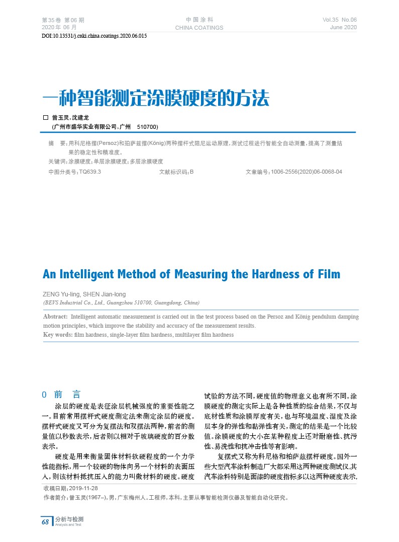 一種智能測定涂膜硬度的方法