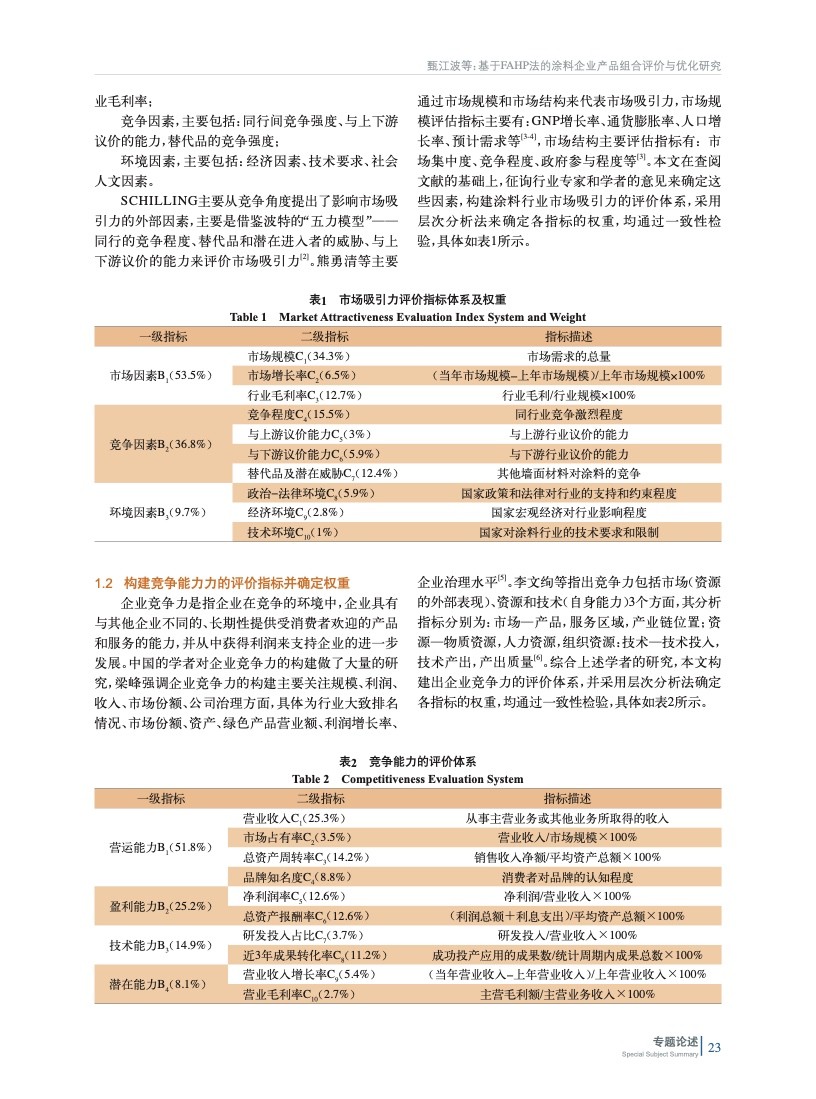 基于FAHP法的涂料企業產品組合評價與優化研究
