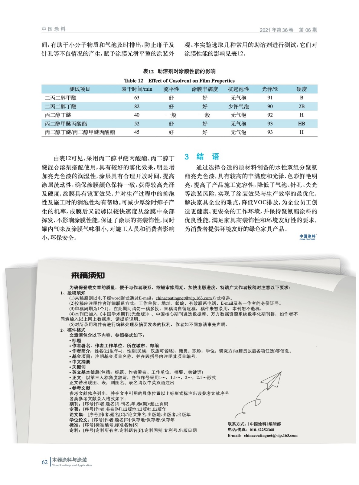 家具用高性能水性雙組分聚氨酯亮光色漆的制備及性能研究