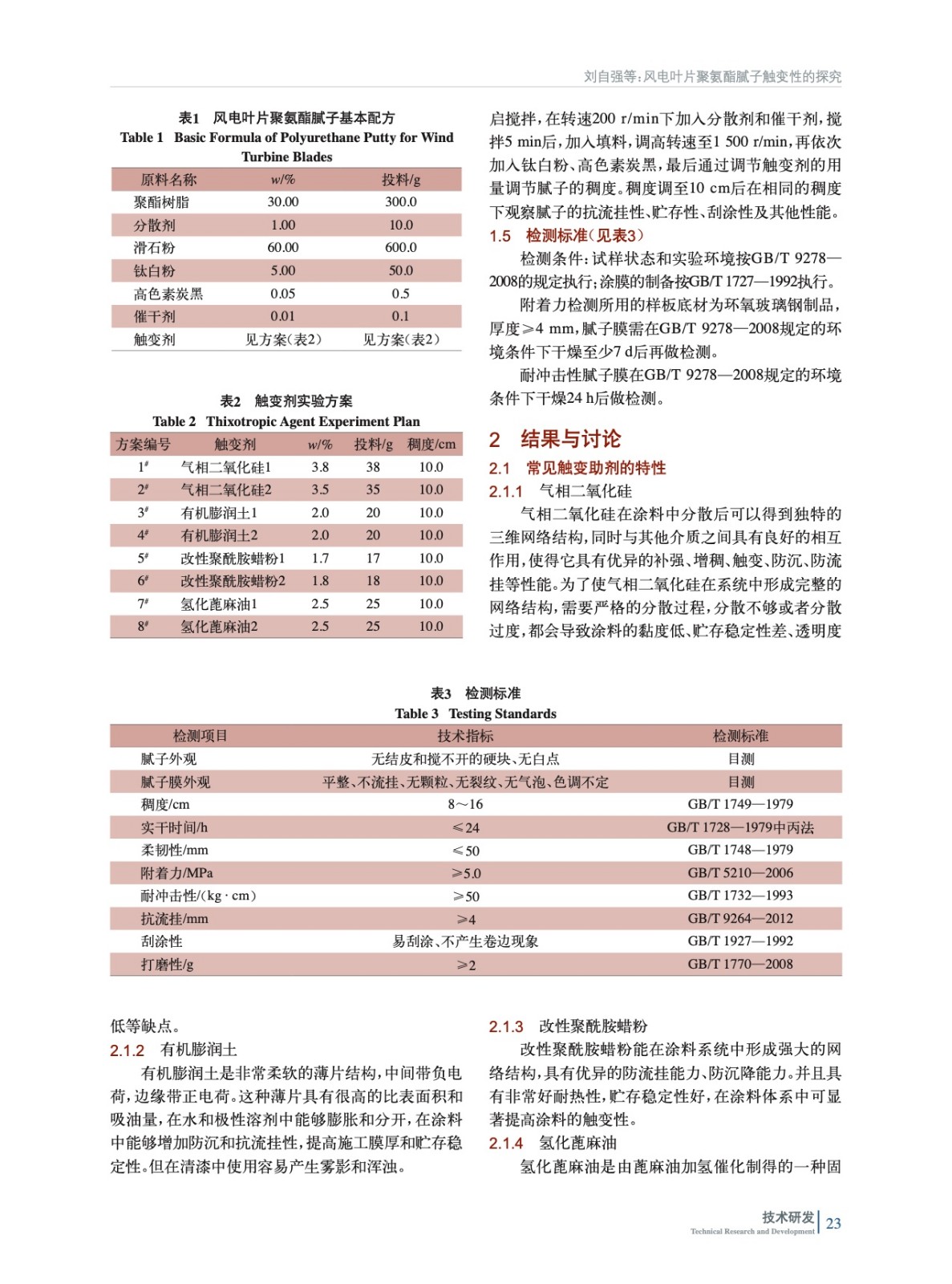 摘要:實驗通過多個角度對風電葉片膩子的觸變性進行了探究。測試結果表明,觸變助劑對膩子的機械性能幾乎無影響,通過有機膨潤土和改性聚酰胺蠟粉的合理搭配使用,既能讓風電葉片聚氨酯膩子具有優良的貯存穩定性,又使其有好的抗流掛性和刮涂性。