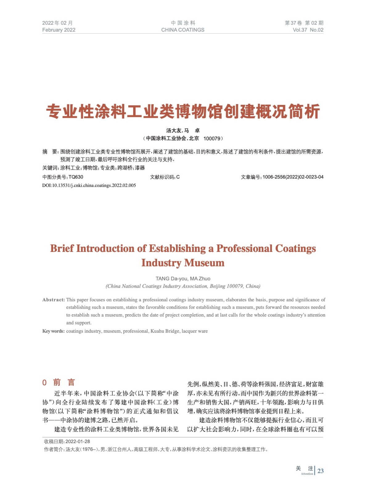 摘要:圍繞創建涂料工業類專業性博物館而展開,闡述了建館的基礎、目的和意義,陳述了建館的有利條件,提出建館的所需資源,預測了竣工日期,最后呼吁涂料全行業的關注與支持。
