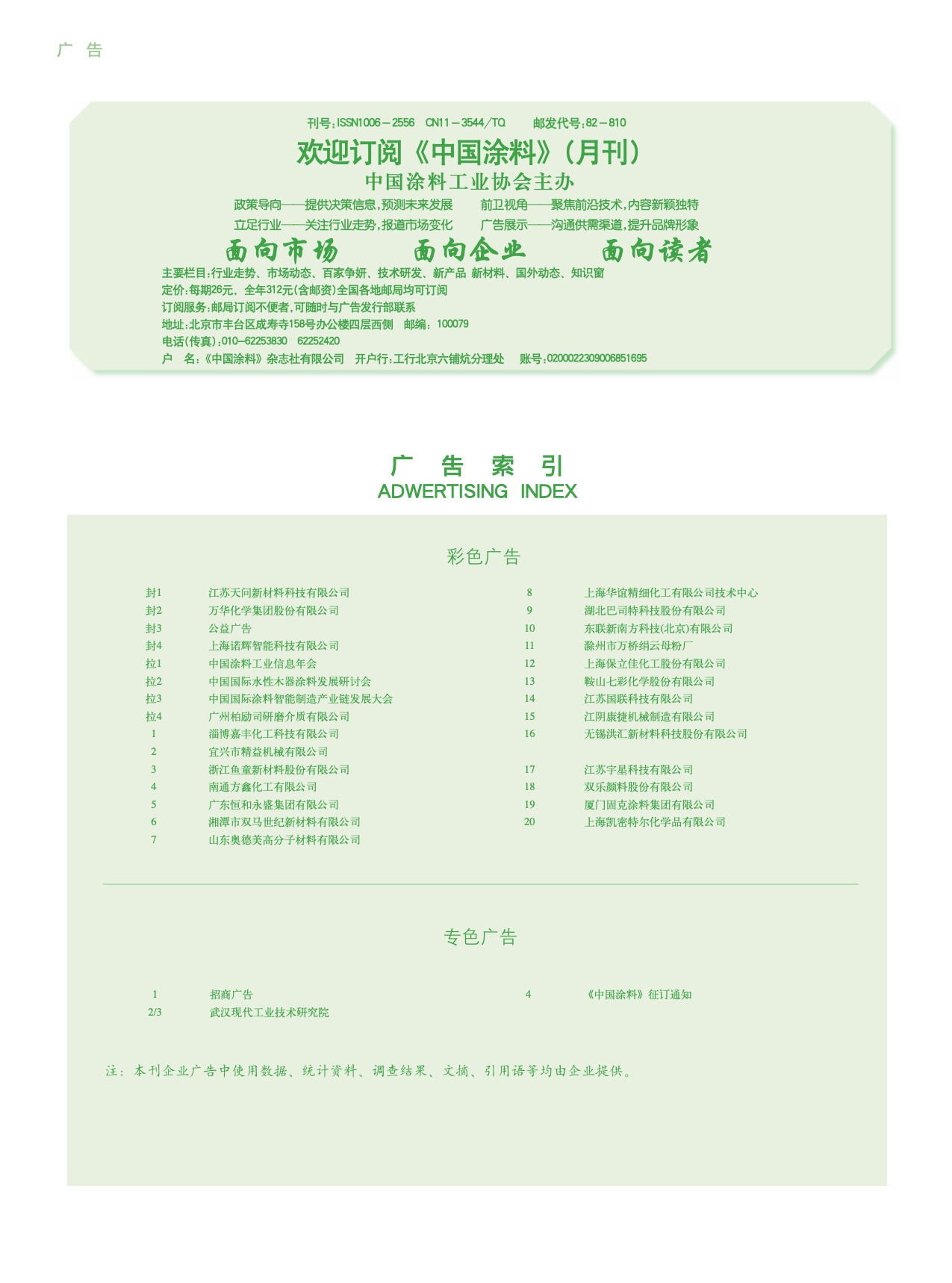 招商廣告、武漢現代、《中國涂料》征訂通知