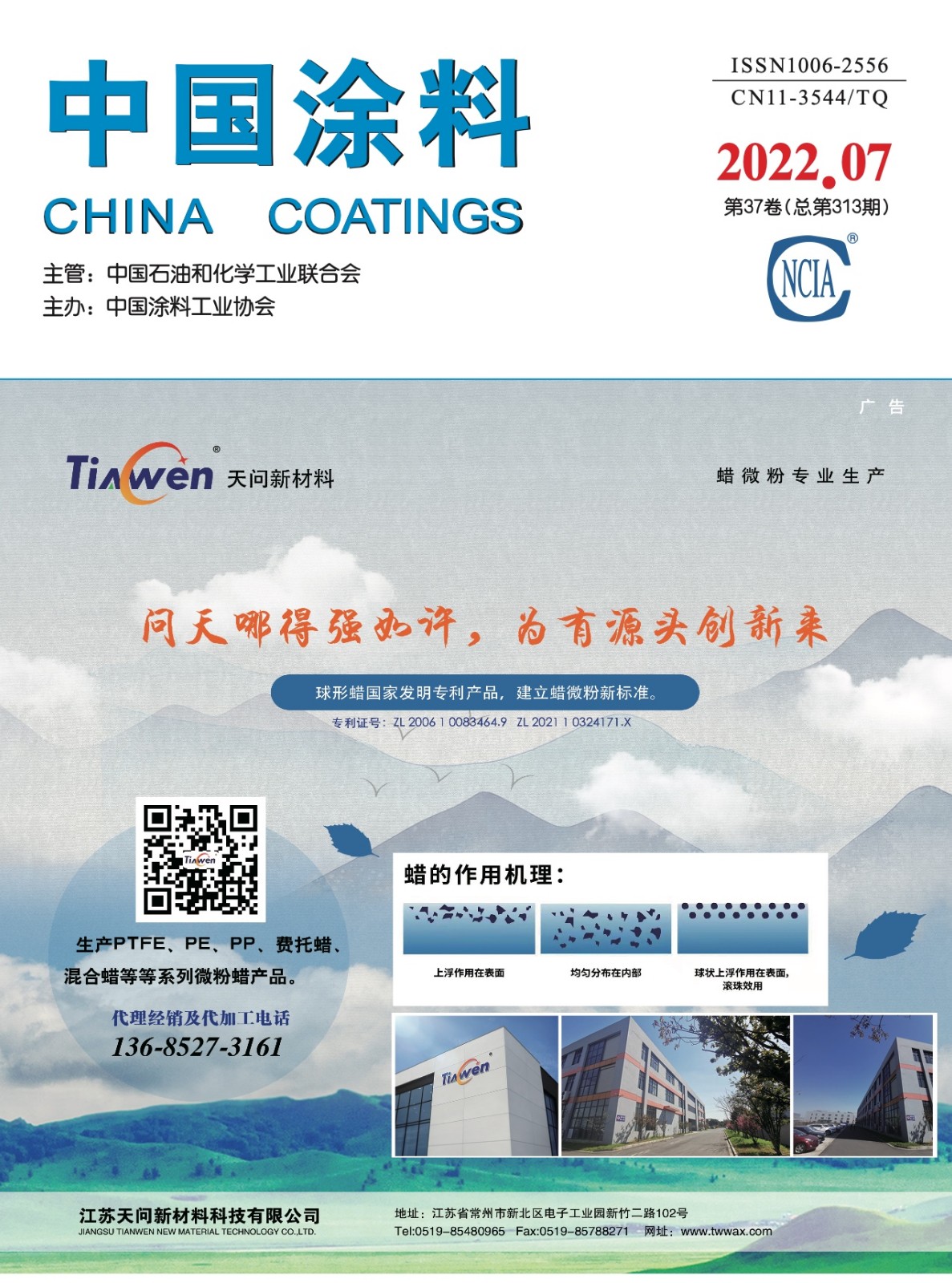 封1:江蘇天問新材料科技有限公司;封2:浙江華源顏料股份有限公司;封3:公益廣告;封4:上海保立佳化工股份有限公司