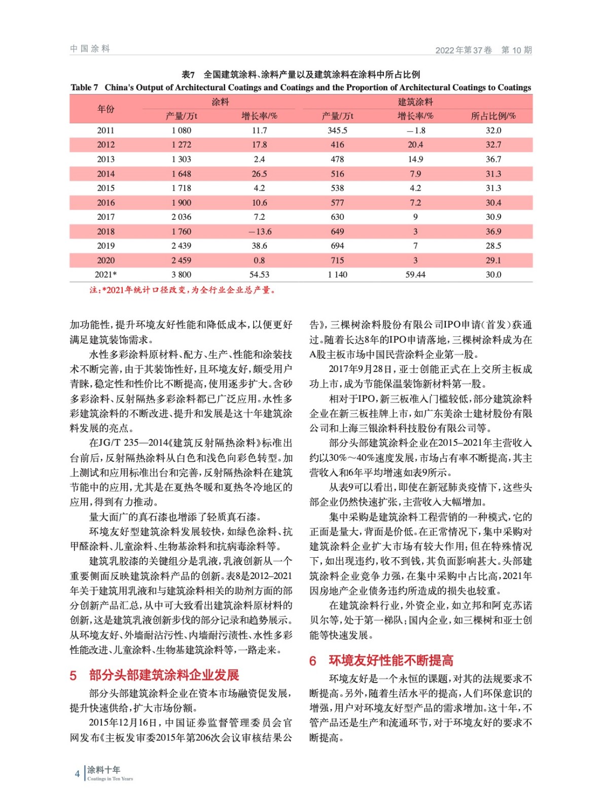 摘要:在2012–2021年的十年間,在嚴厲的房地產調控 和舊房翻新等新動力的作用下,在建筑涂料行業內部 創新的推動下,我國建筑涂料不斷向前發展。