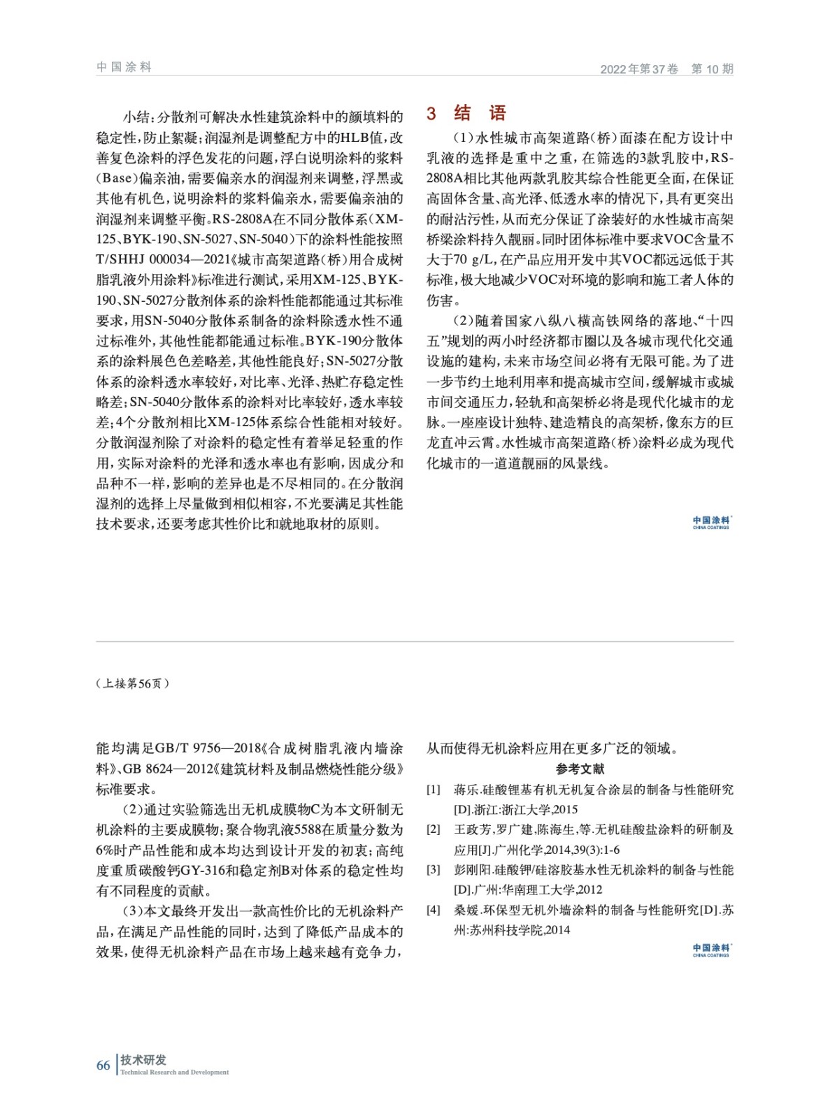 摘要:著重討論乳膠和分散劑對水性城市高架橋梁涂料的影響,在保證高固體含量、高光澤、低透水率的情況下,具有更突出的耐沾污性,從而充分保證了涂裝好的水性城市高架橋梁涂料持久靚麗。同時在產(chǎn)品應(yīng)用開發(fā)中其VOC較低,極大減少VOC對環(huán)境的影響和對施工者人體的傷害。