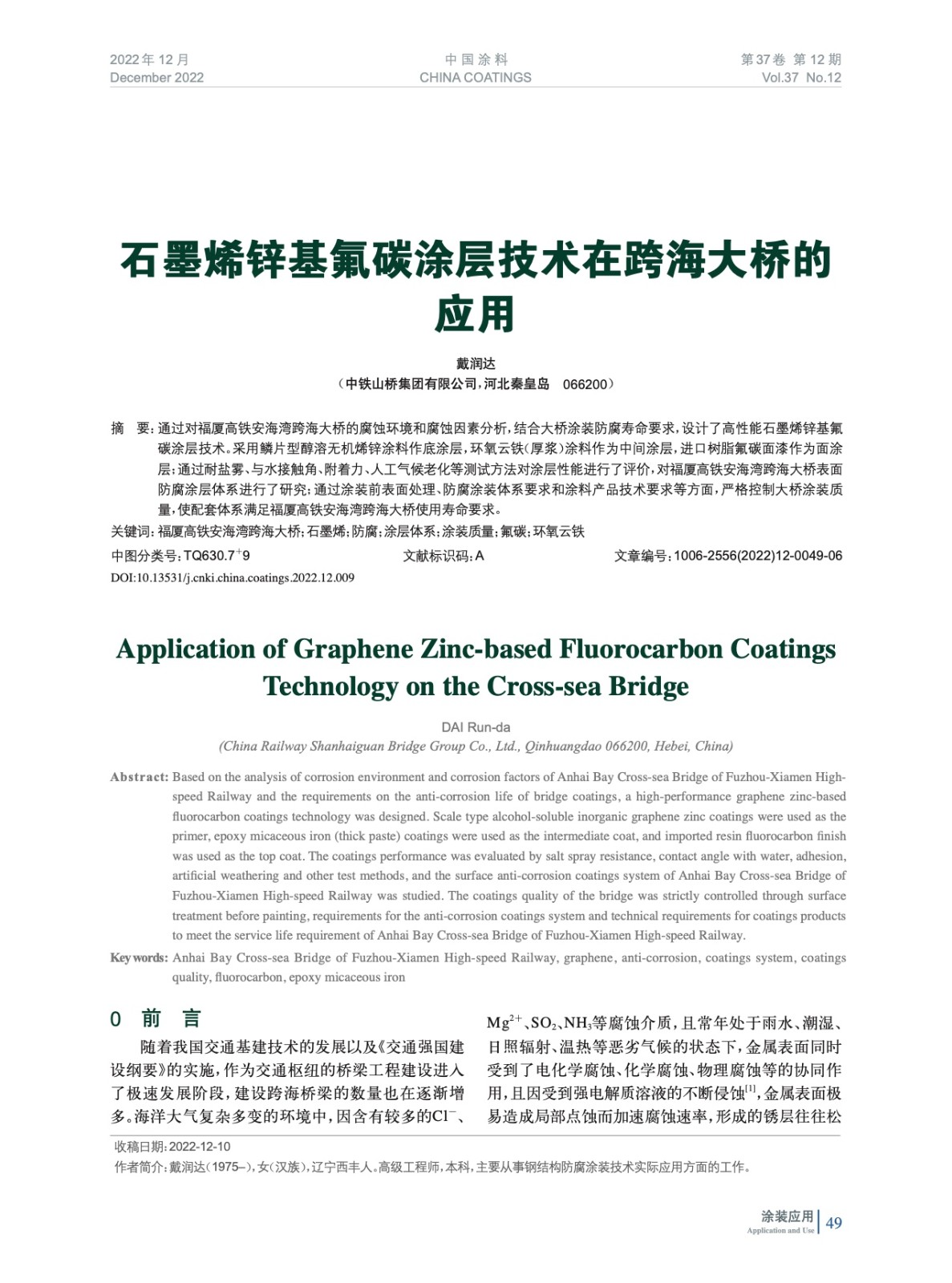 石墨烯鋅基氟碳涂層技術在跨海大橋的應用