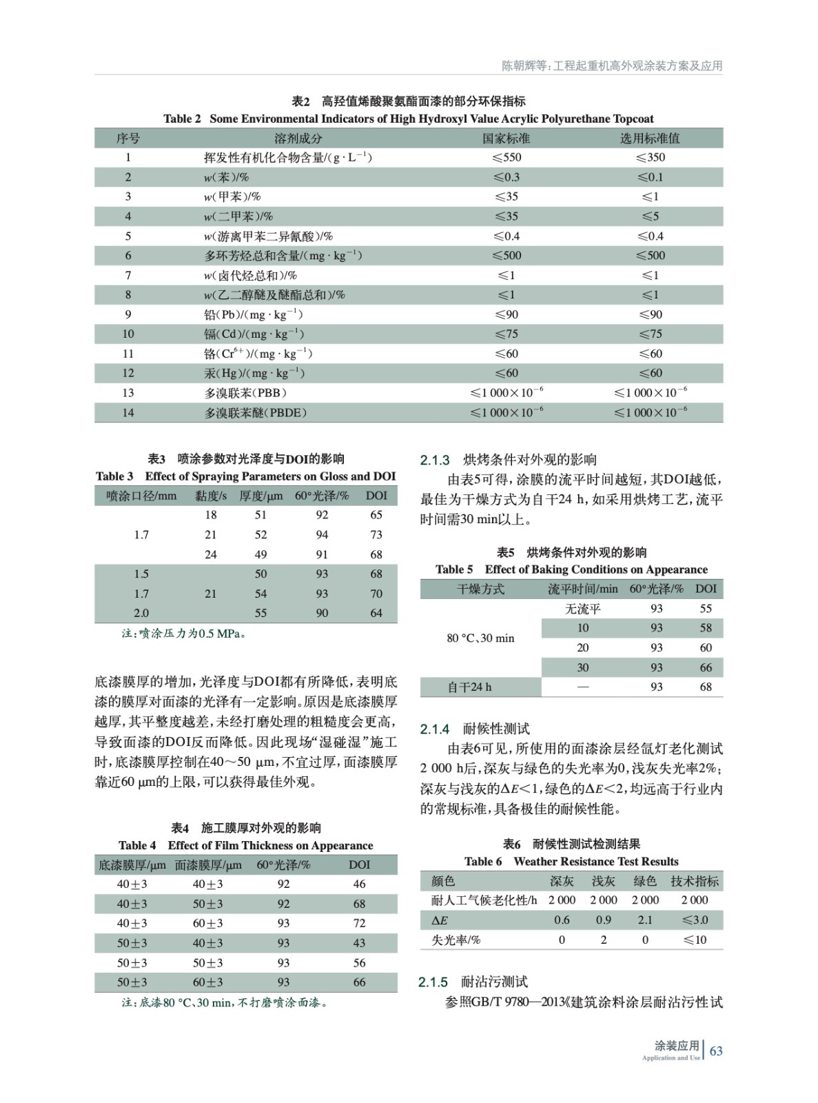 摘要:分析了工程起重機涂層的外觀質量要求,并根據工程起重機的通用技術指標和現有的涂裝條件,選取以高羥值丙烯酸涂料為面漆涂層,討論了涂裝工藝中的一些關鍵因素,最終實現了工程起重機的高外觀、高耐候及耐沾污的涂裝。