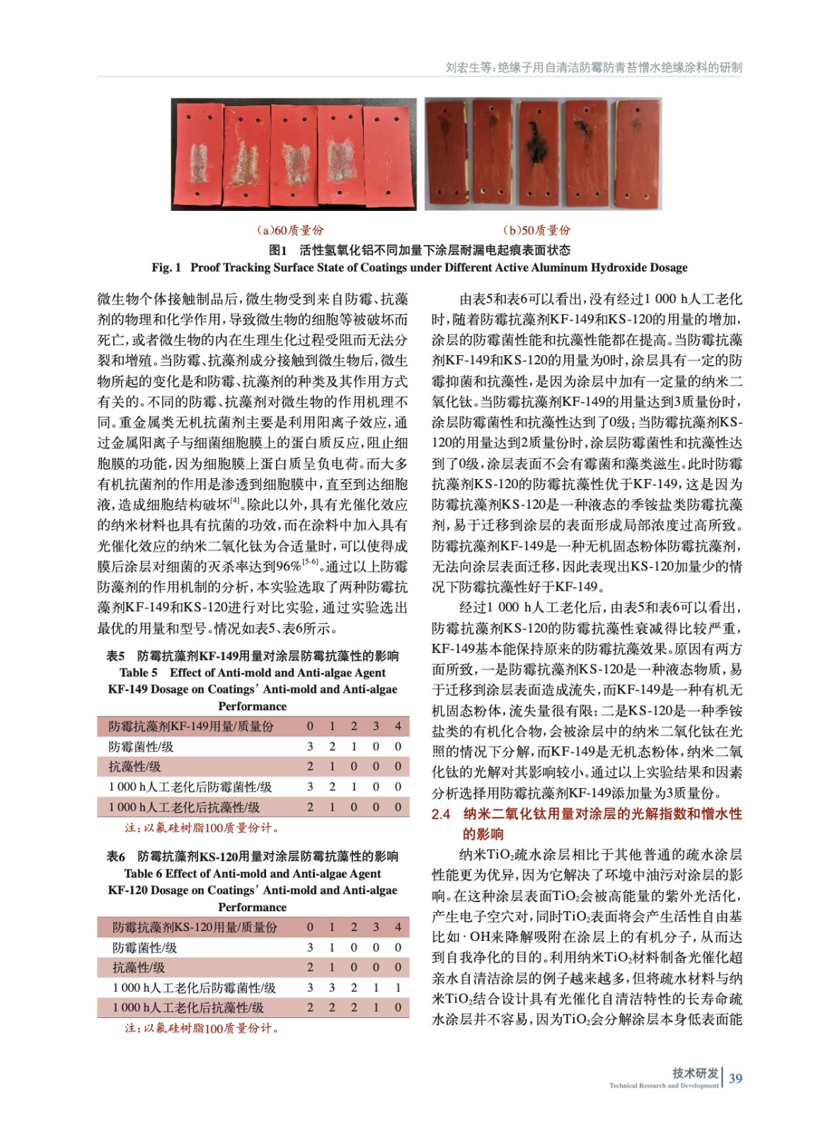 摘要:以氟硅樹脂、活性氫氧化鋁、防霉抗藻劑、納米二氧化鈦、烷氧基單封端聚二甲基硅氧烷、異氰酸酯類固化劑和一些助劑等為主要原料,制備了絕緣子用防霉防青苔自清潔憎水絕緣涂料。結果表明,選用氟硅樹脂作為基礎成膜物能滿足涂層的憎水和耐光解的要求,當活性氫氧化鋁用量為60質量份時涂層的耐漏電起痕能到達TMA2.5級;當納米二氧化鈦用量為3質量份時涂層的光解指數為23 nmol/(L·min);當防霉抗藻劑用量為3質量份時涂層的防霉菌性和抗藻性可以達到0級;當烷氧基單封端聚二甲基硅氧烷用量為5質量份時涂層的憎水遷移性可以達到HC1級。
