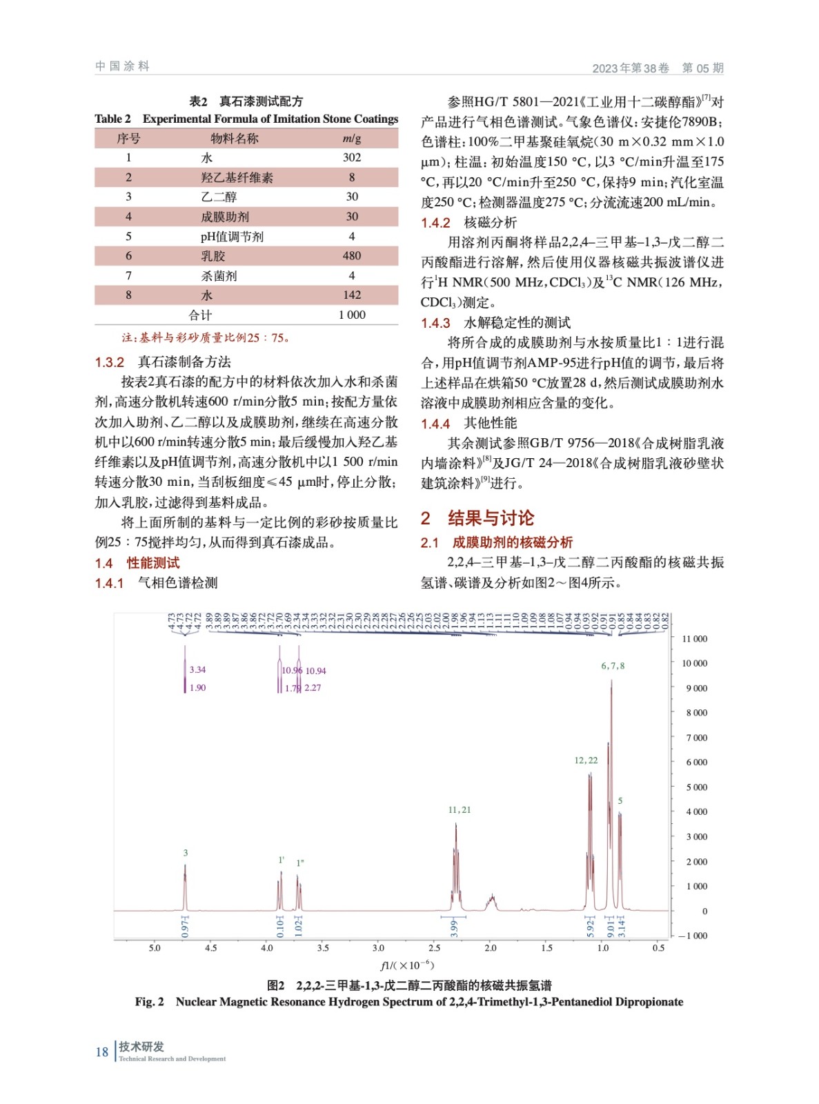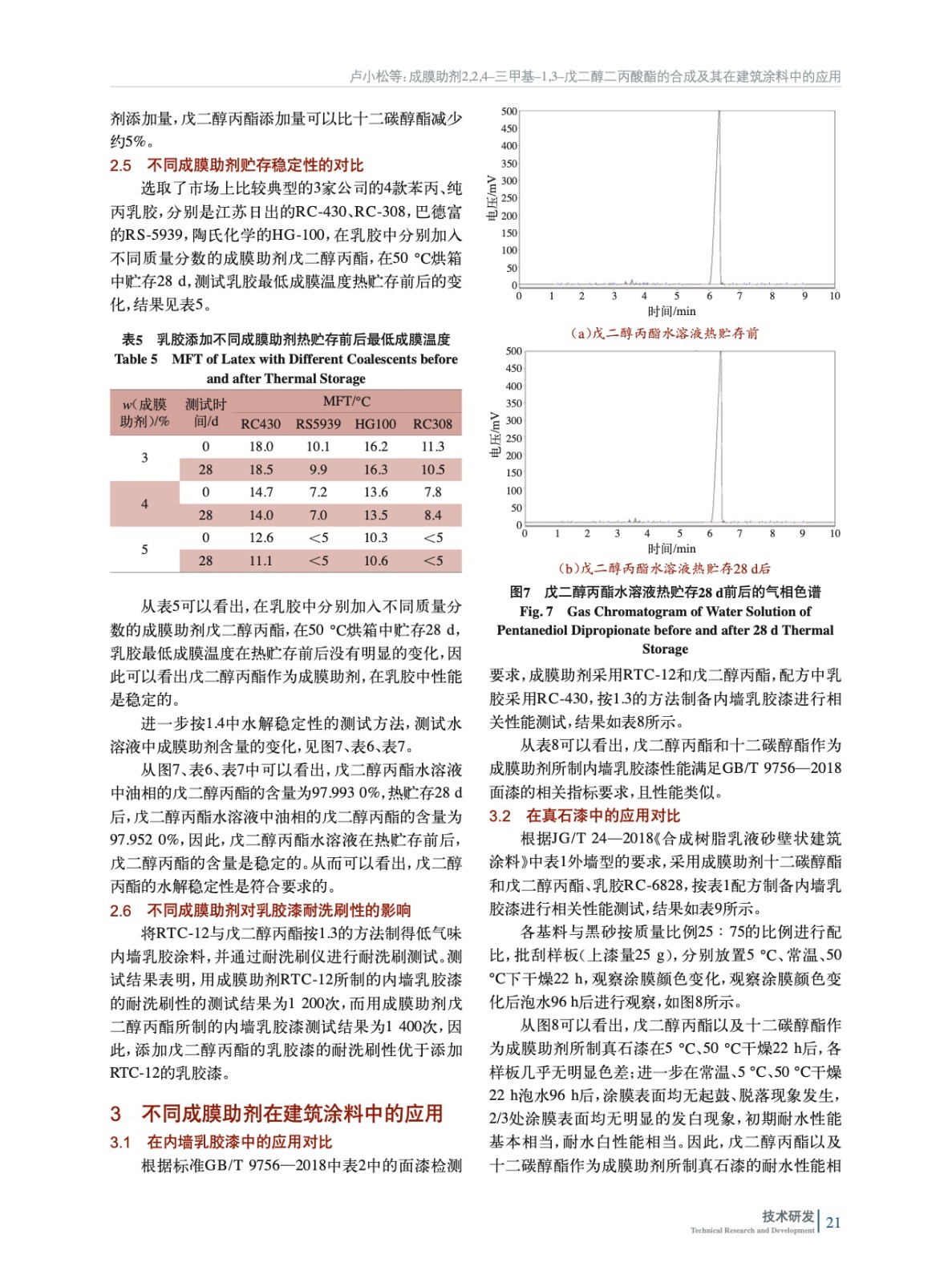 成膜助劑2,2,4–三甲基–1,3–戊二醇二丙酸酯的合成及其在建筑涂料中的應用
