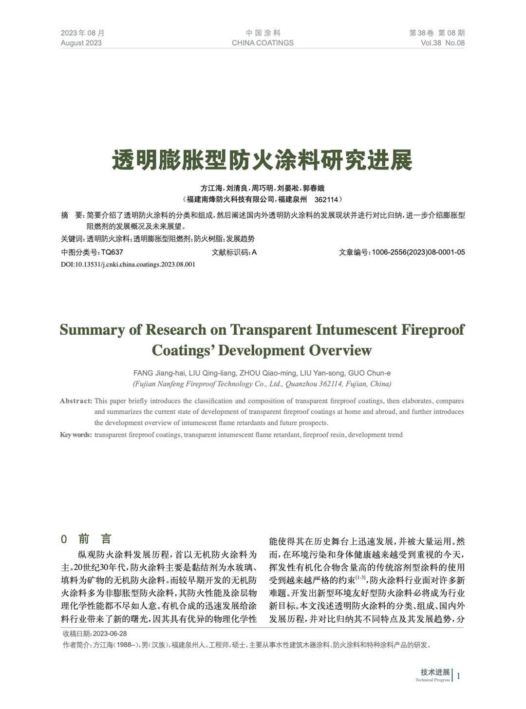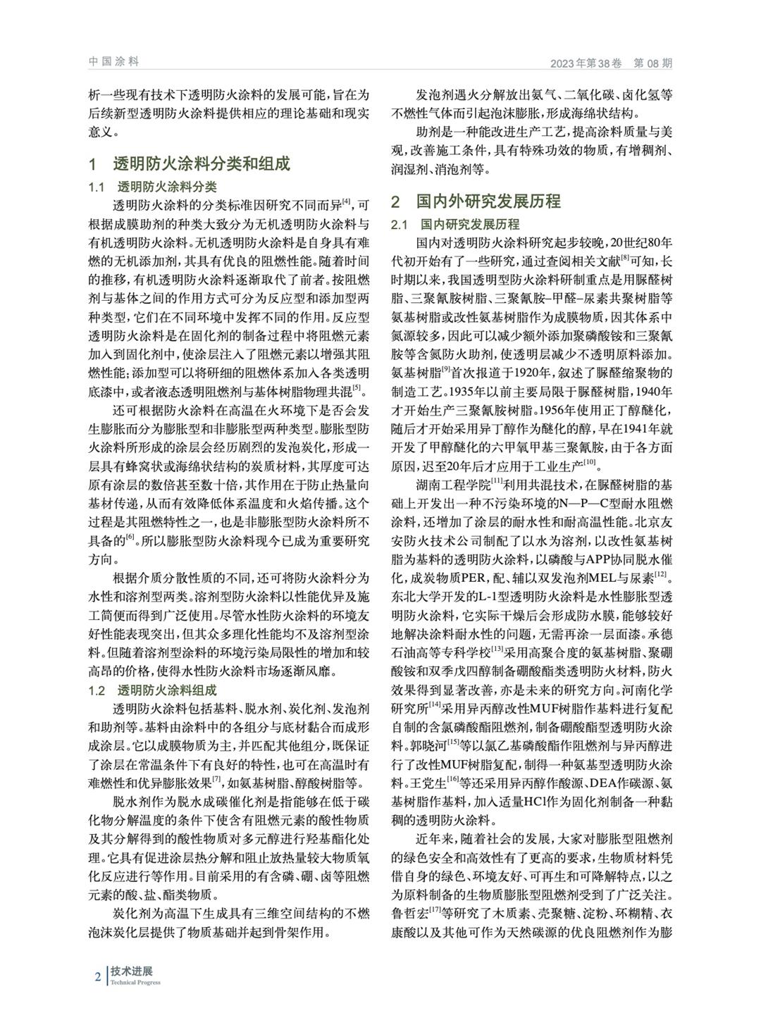 摘要:簡要介紹了透明防火涂料的分類和組成,然后闡述國內(nèi)外透明防火涂料的發(fā)展現(xiàn)狀并進行對比歸納,進一步介紹膨脹型阻燃劑的發(fā)展概況及未來展望。