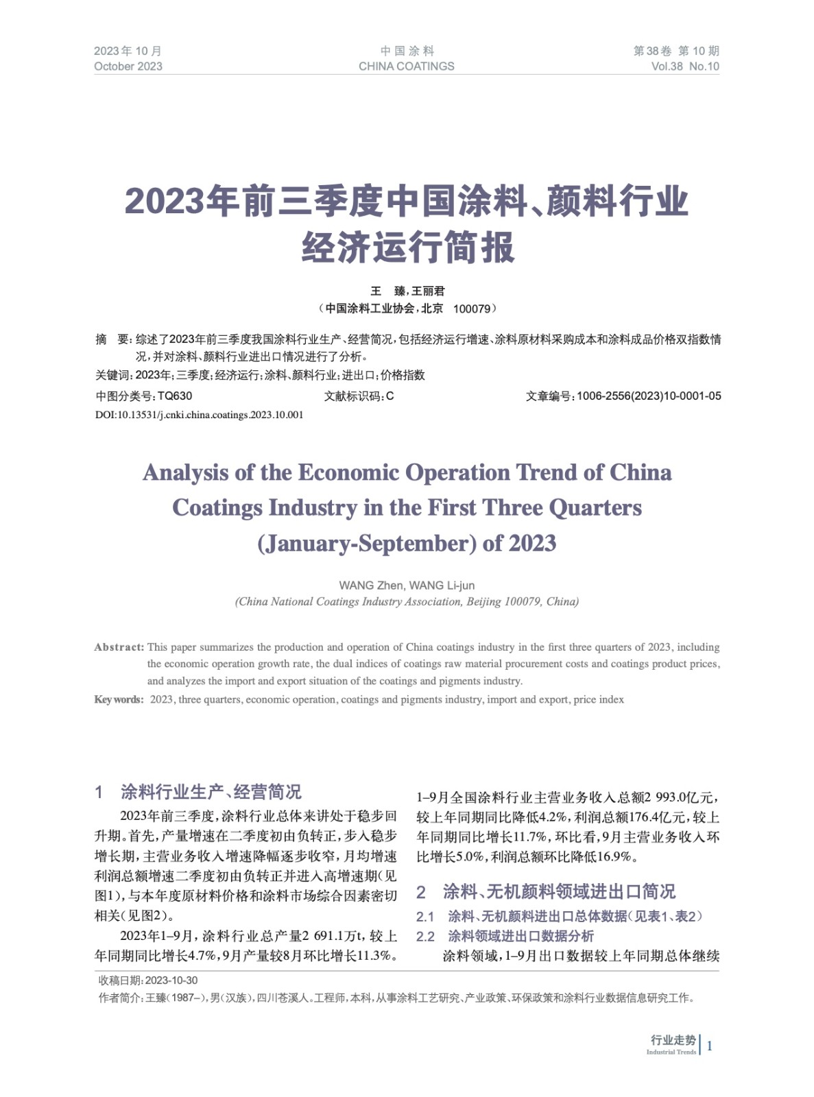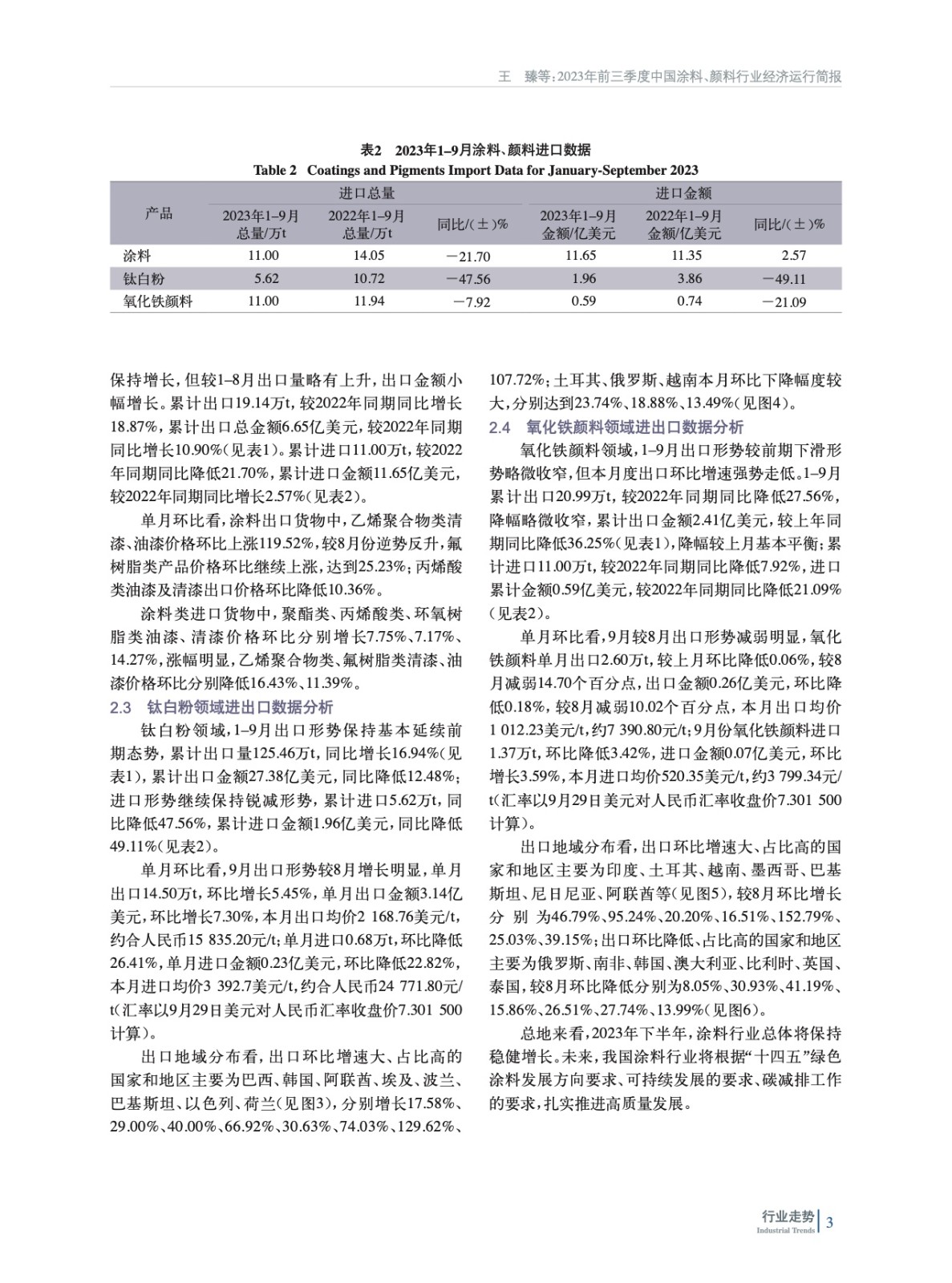2023年前三季度中國涂料、顏料行業(yè)經濟運行簡報