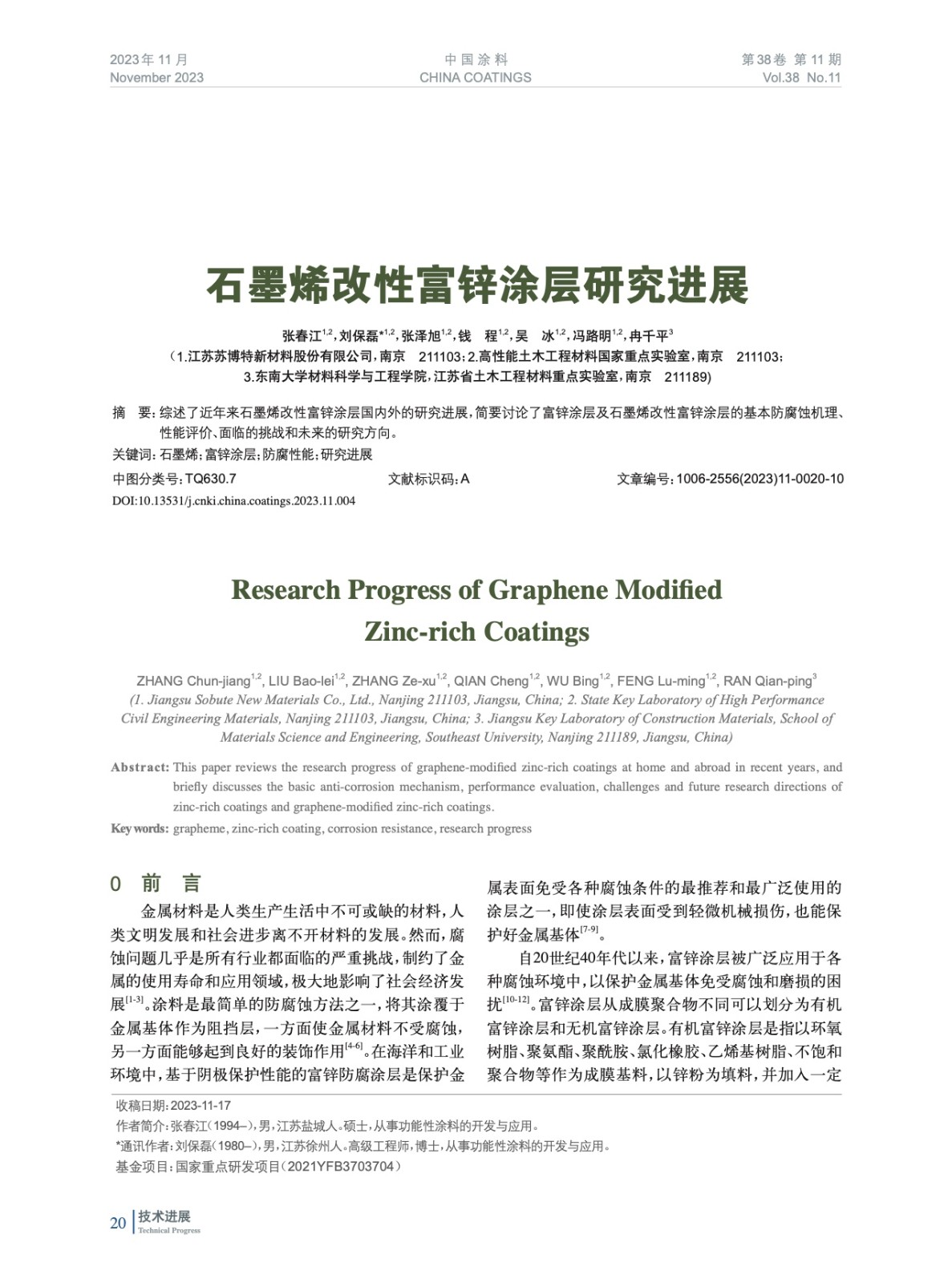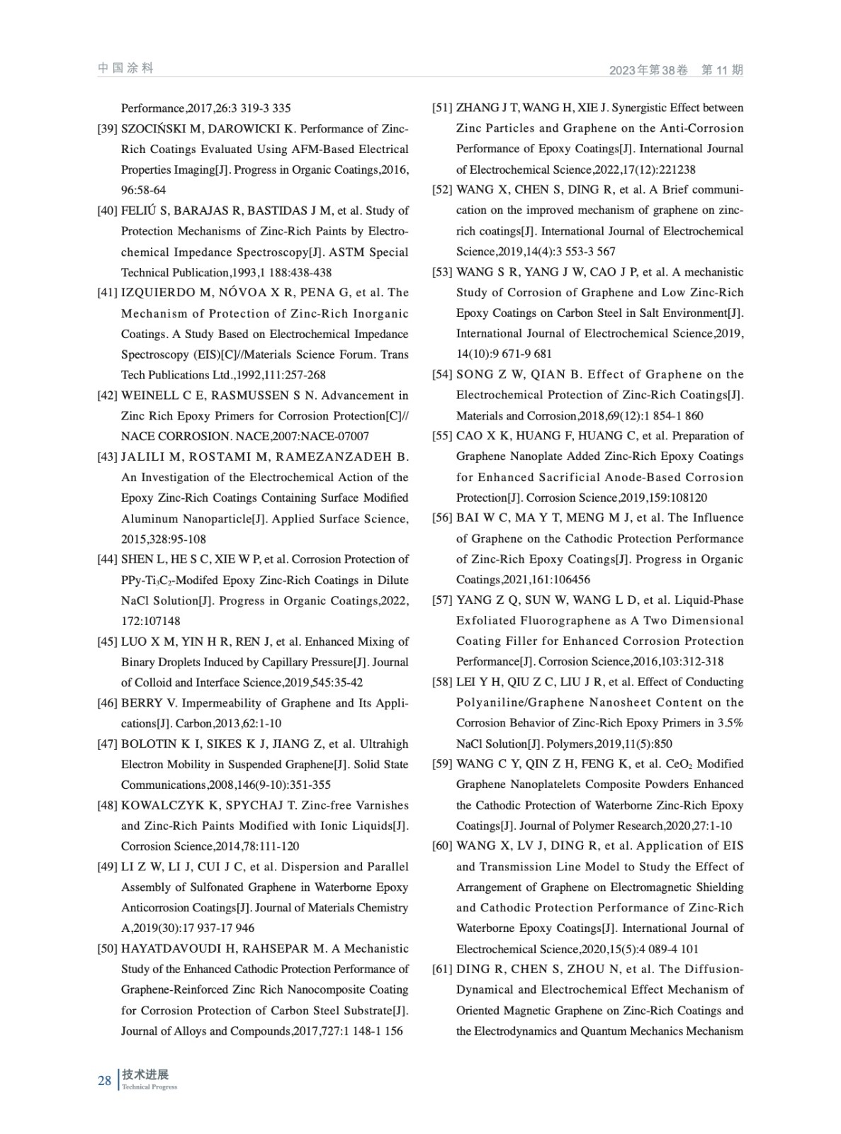綜述了近年來石墨烯改性富鋅涂層國內外的研究進展,簡要討論了富鋅涂層及石墨烯改性富鋅涂層的基本防腐蝕機理、性能評價、面臨的挑戰和未來的研究方向。