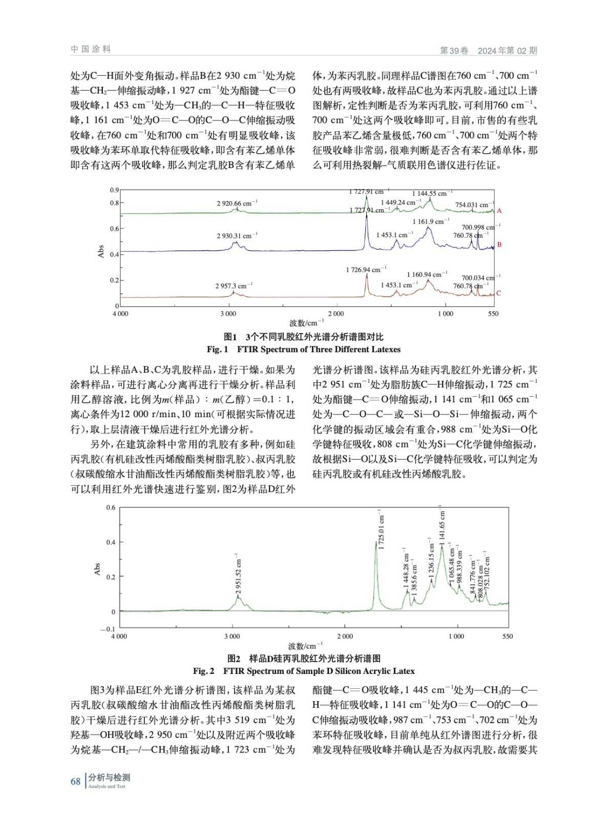 摘要:探討了建筑涂料中乳膠類型以及單體比例分析方法,利用紅外光譜分析儀進行分析,并通過樣品所含有的特征吸收峰的位置判斷乳膠類型,如苯環單取代特征吸收峰為苯乙烯特征吸收,Si—C或Si—O等特征吸收峰為有機硅單體特征吸收等。另外,可以綜合利用熱裂解–氣質聯用色譜分析儀,對一些紅外光譜不能明確的乳膠類型樣品進行再次確認,也可以利用單體出峰時間以及面積,對合成單體進行定性以及定量分析。