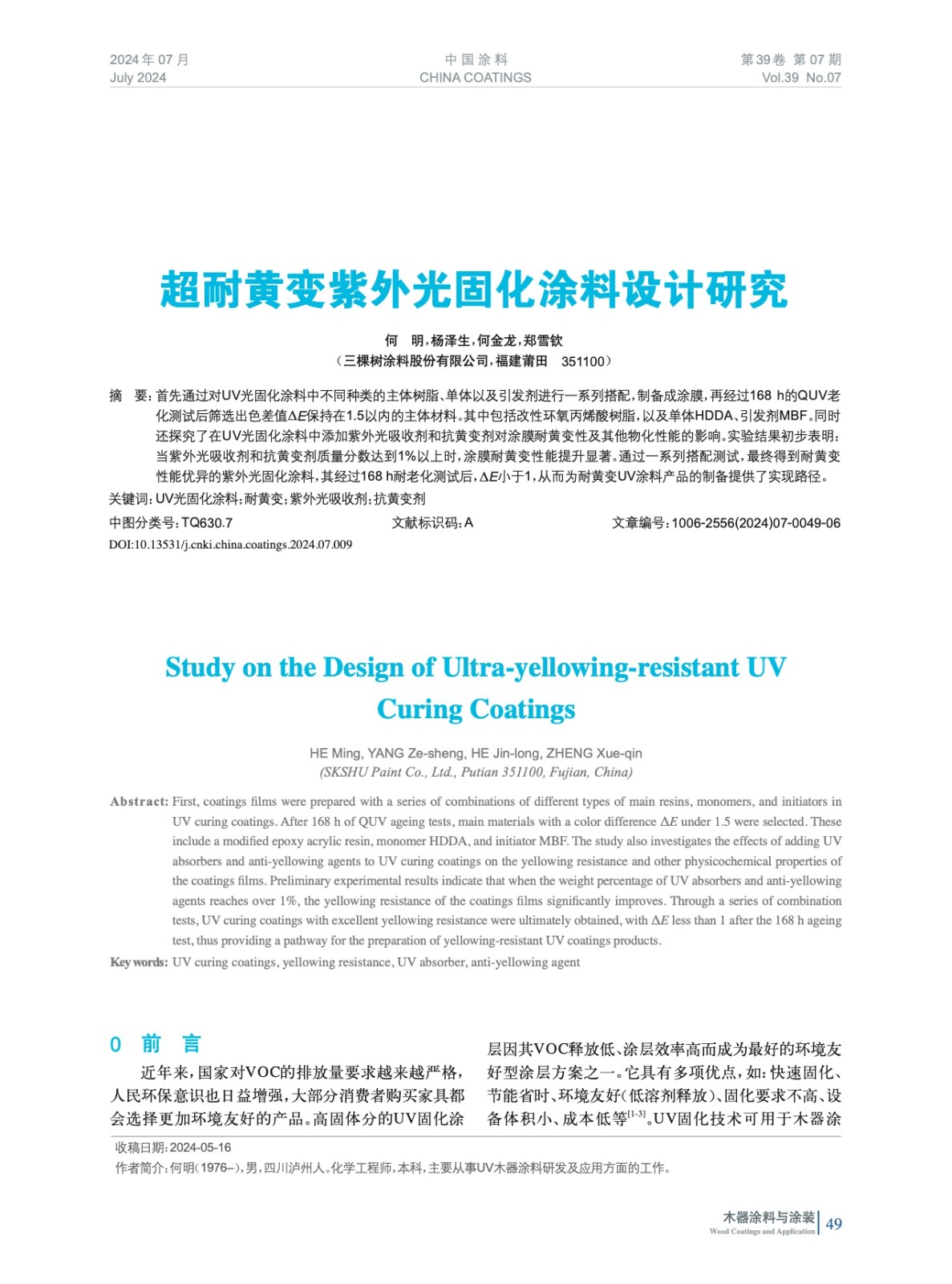 發表于2024-10-21 16:36:29| 次閱讀| 來源中國涂料| 作者何 明,楊澤生,何金龍,鄭雪欽