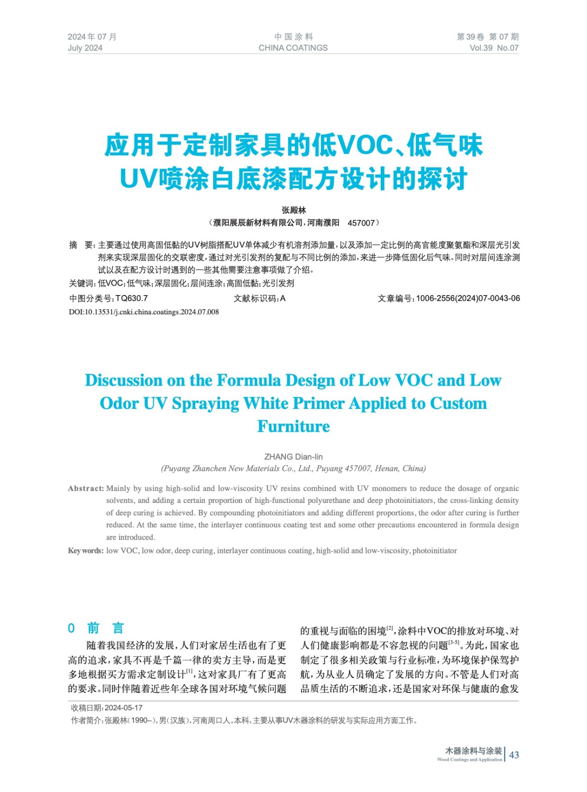 應(yīng)用于定制家具的低VOC、低氣味UV噴涂白底漆配方設(shè)計(jì)的探討