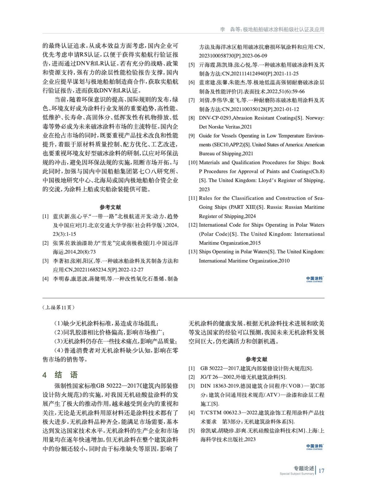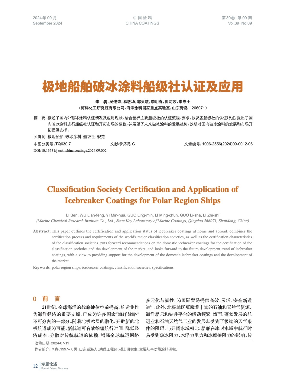 摘要:概述了國內(nèi)外破冰涂料認(rèn)證情況及應(yīng)用現(xiàn)狀,結(jié)合世界主要船級社的認(rèn)證流程、要求,以及各船級社的認(rèn)證特點(diǎn),提出了國內(nèi)破冰涂料進(jìn)行船級社認(rèn)證和開拓市場的建議,并展望了未來破冰涂料的發(fā)展趨勢,以期對國內(nèi)破冰涂料的發(fā)展和市場開拓提供支撐。
