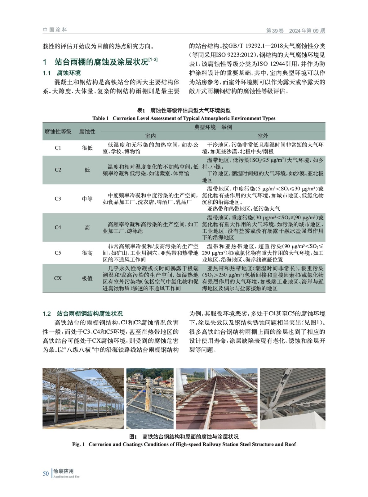分析了高鐵站臺上以雨棚鋼結構為例的腐蝕狀況和涂層現狀,分析腐蝕與涂層缺陷的原因,介紹了不同的防銹底漆和耐紫外光老化的面漆涂料產品的性能特點,結合防火涂層,提出了高效環保的站臺鋼結構防護維修方案。