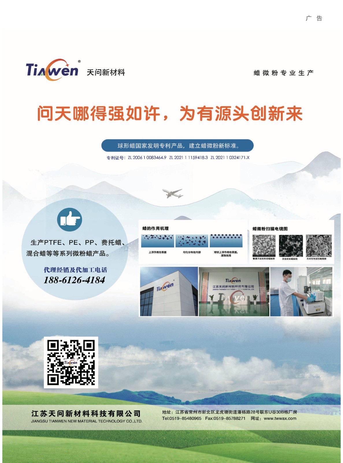 封1:畢克助劑(上海)有限公司;封2:江蘇天問新材料科技有限公司;封3:江蘇宇星科技有限公司;封4:江蘇布威倫環(huán)??萍加邢薰?/div>