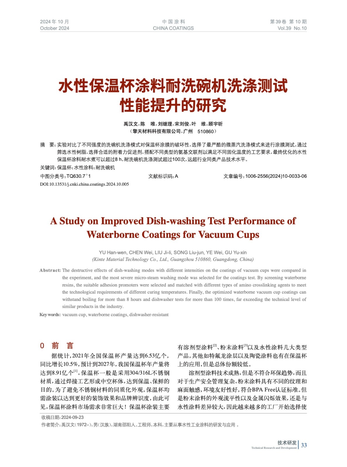 本文系作者@禹漢文,陳 唯,劉繼理,宋劉俊,葉 維,顧宇昕 授權(quán)中國涂料網(wǎng)發(fā)表,并經(jīng)中國涂料網(wǎng)編輯,未經(jīng)允許不得轉(zhuǎn)載,如需轉(zhuǎn)載請聯(lián)系chinacoatingnet@vip.163.com