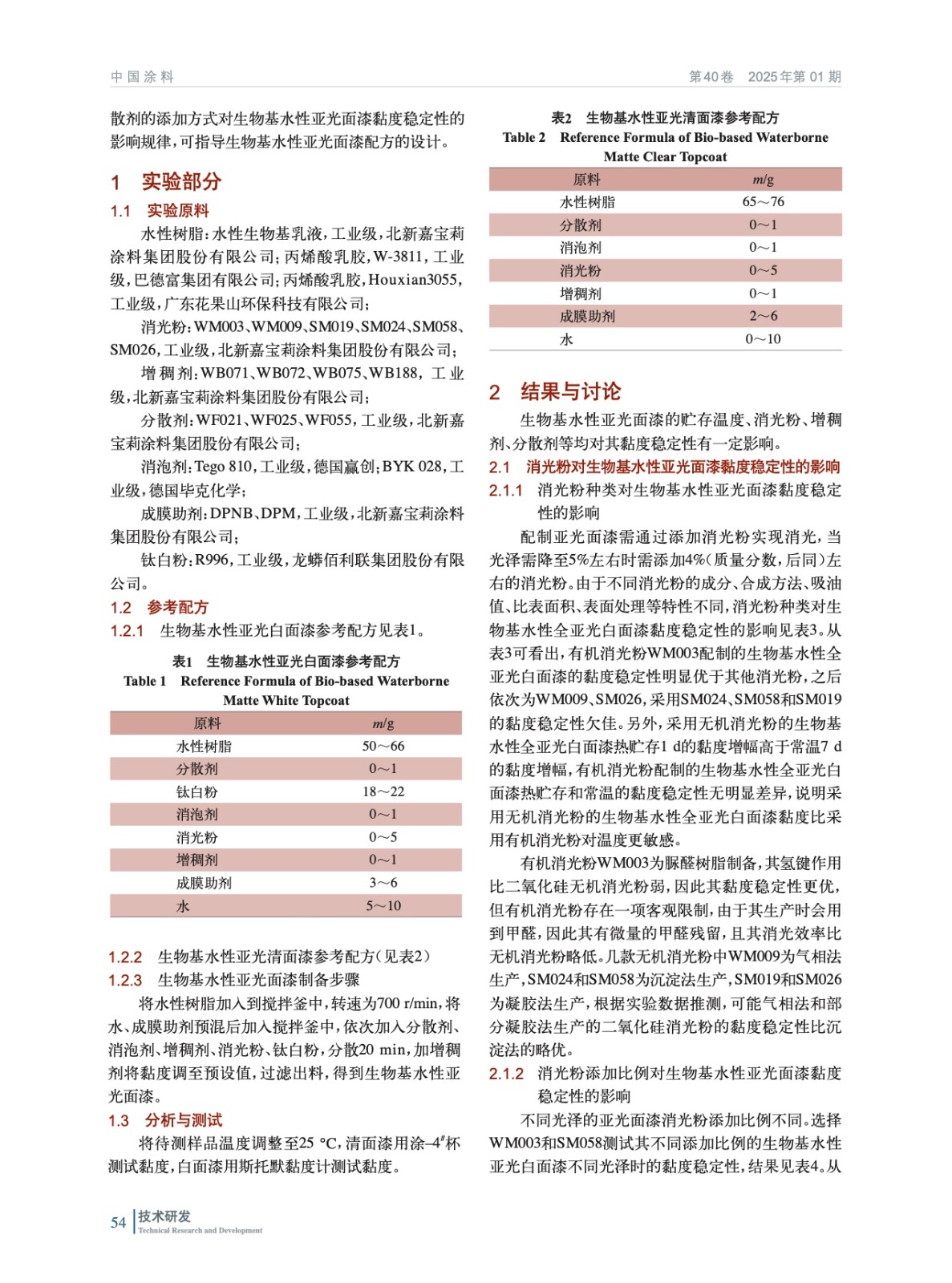 摘要:分析了消光粉、增稠劑、分散劑的種類和添加比例以及分散劑的添加方式對生物基水性亞光面漆黏度穩定性的影響規律。研究表明,生物基水性亞光白面漆在貯存過程中的后增稠現象比生物基水性亞光清面漆更明顯,說明鈦白粉和消光粉的協同作用會明顯增強后增稠現象,而生物基水性亞光清面漆在貯存過程中多存在黏度先下降再上升的現象。高溫貯存會加速其后增稠;消光粉添加比例越高后增稠越明顯;采用高剪、中剪和低剪增稠劑配制的生物基水性亞光白面漆一定程度上的后增稠程度依次提高,但有些低剪增稠劑兼顧增稠效率和黏度穩定性的優勢。低分子量潤濕分散劑的黏度穩定性優于高分子量潤濕分散劑,陰離子潤濕劑的黏度穩定性優于非離子潤濕分散劑。