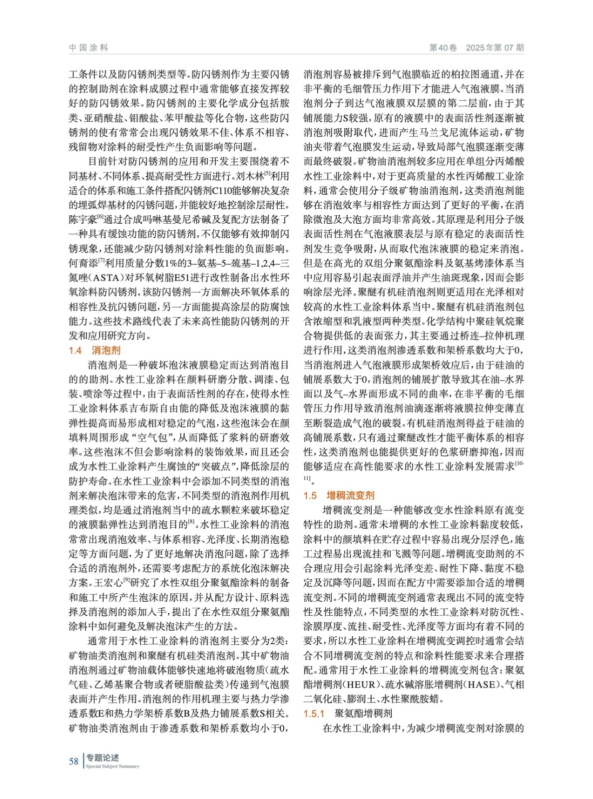水性工業(yè)涂料用幾類主要助劑的研究進(jìn)展