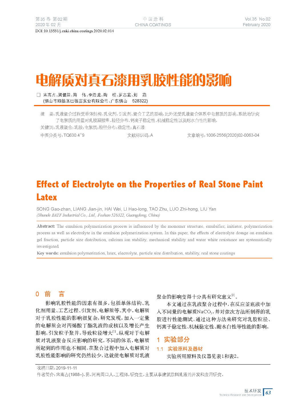電解質對真石漆用乳膠性能的影響