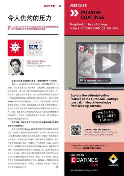 發(fā)表于2021-01-30 11:45:19| 次閱讀| 來(lái)源歐洲涂料雜志| 作者André Vieira de Castro,CEPE委員會(huì)新任主席