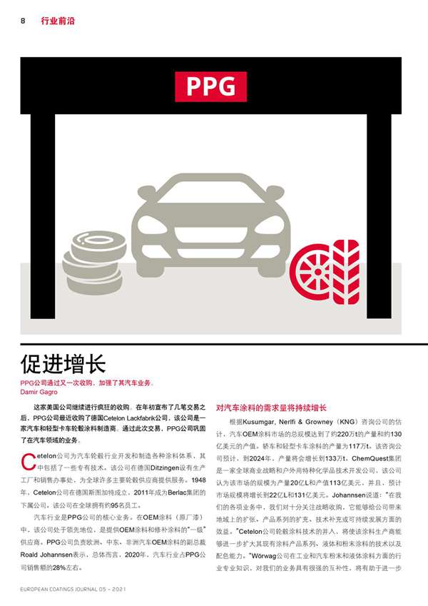 PPG公司通過又一次收購,加強了其汽車業務