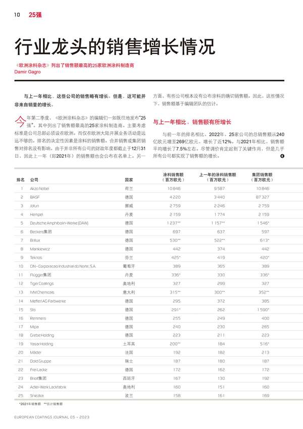 銷(xiāo)售額最高的25家歐洲涂料制造商