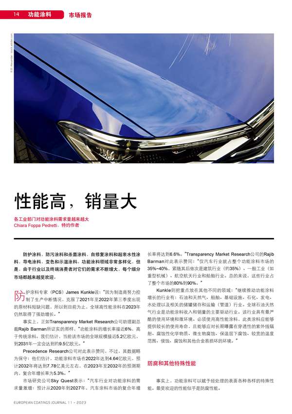 各工業(yè)部門對功能涂料需求量越來越大