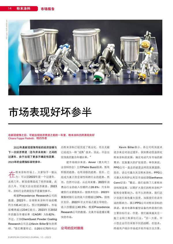 在新冠疫情之后、可能出現經濟衰退之前的一年里,粉末涂料仍然表現良好。