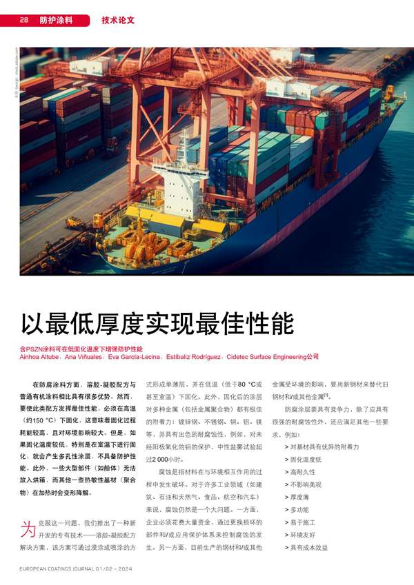 含PSZN涂料可在低固化溫度下增強防護性能