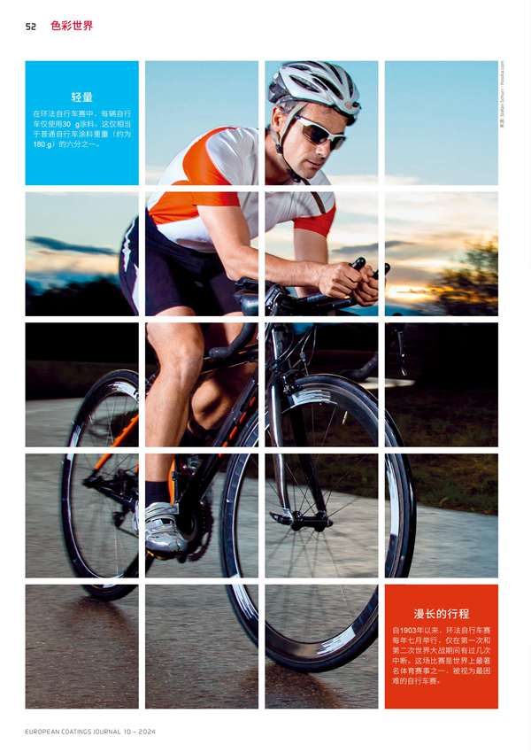 在環法自行車賽中,每輛自行車僅使用30g涂料