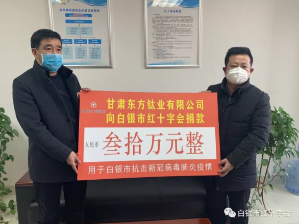 昆明東昊鈦業有限公司向富民縣紅十字會捐款15萬元用于疫情防控