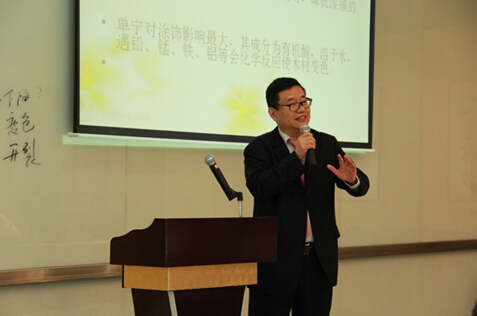 公司副總經理楊柳介紹華隆涂料的整體概況和未來發展規劃,并邀請何會長一行參觀了樣板展廳及建設中的集團新廠區。水性漆工程師羅愛民和家具漆營銷總監唐學峰結合不同類型的家具企業和家具產品,分別介紹了華隆水性封閉系列、水性開放系列、水性半開放系列、UV底水性面系列、PE PU底水性面系列、全UV無溶劑噴涂系列等多種環保涂裝解決方案。
