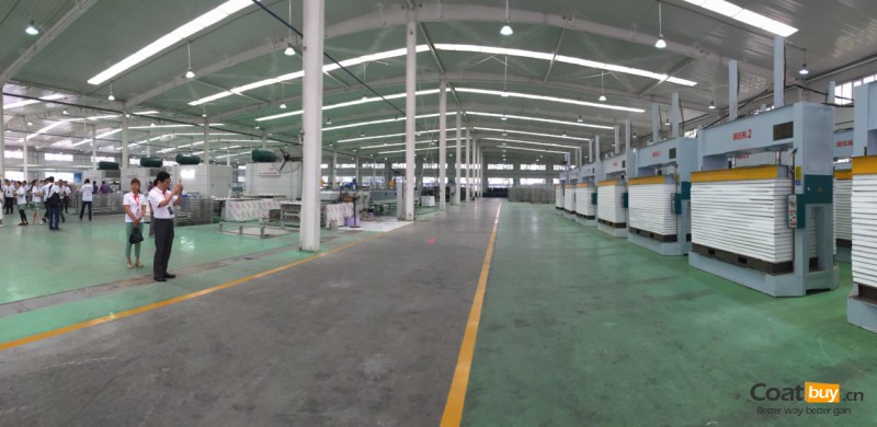 嘉賓們抵達固克(天津)公司后,首先參觀了整個生產基地。目前,天津基地是國內最大的保溫一體板生產企業,建有天工石生產車間、保溫材料車間、涂料車間、研發中心、實驗室等系列配套設施。