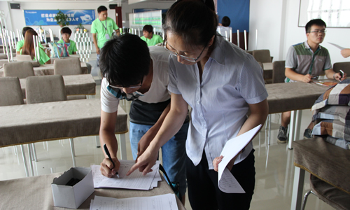 晨陽員工指導大學生填寫實習表