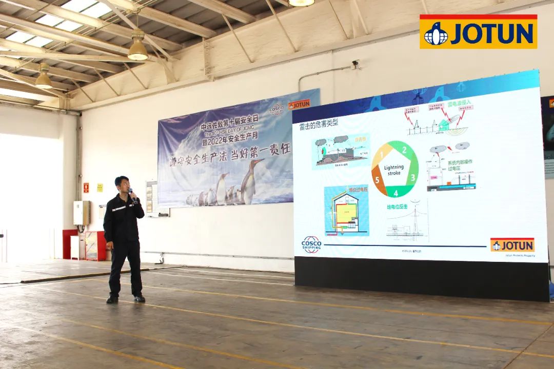 應急演練過后,HSE&QA部經(jīng)理鄧國棟為大家進行了“夏季四防”主題培訓,講解夏季常見的洪水、雷電、中暑、火災這四種突發(fā)事件的預防和應對措施。