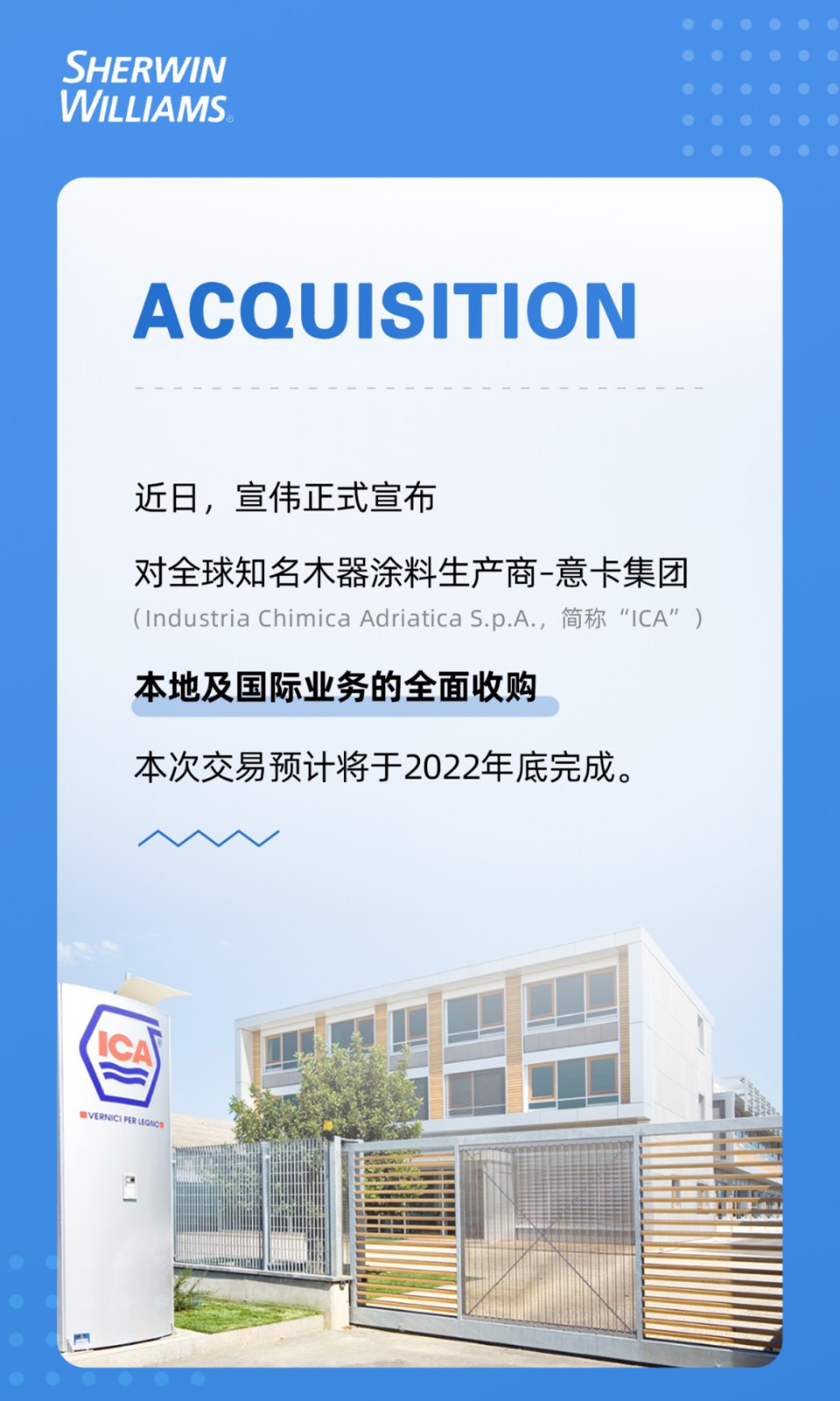 收購|宣偉宣布收購意大利木器涂料公司ICA