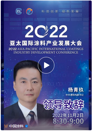 11月2日,以“科技創(chuàng)新,綠色發(fā)展”為主題、由中國(guó)涂料工業(yè)協(xié)會(huì)、濮陽(yáng)市人民政府聯(lián)合主辦的“2022年亞太國(guó)際涂料產(chǎn)業(yè)發(fā)展大會(huì)”以網(wǎng)絡(luò)直播形式正式拉開帷幕,大咖云集,干貨滿滿,吸引了數(shù)以百萬計(jì)的涂料、涂裝及上下游人士在線觀看。