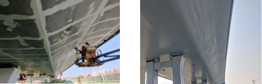 該體系采用高滲透性的水性環(huán)氧封閉底漆,它在強(qiáng)堿性環(huán)境依然具有良好的附著力和漆膜強(qiáng)度,能夠阻隔混凝土中鋼筋與空氣接觸,從而起到保護(hù)作用。而水性環(huán)氧云鐵中間漆增強(qiáng)了整個(gè)涂層的層間附著力和保護(hù)性能,抗?jié)B透性、重涂性出眾,耐鹽霧。水性氟碳面漆則賦予了漆膜優(yōu)異的耐候性,令項(xiàng)目能夠經(jīng)受太陽光長期暴曬并保持光澤。