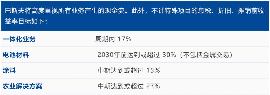 2024年1月起,巴斯夫將采用新的關鍵績效指標(KPI)指導整個集團。短中期內,公司會更重視不計特殊項目的息稅、折舊、攤銷前收益和現金流。同時,公司將繼續把已動用資本回報率(ROCE)作為中期管理關鍵績效指標,持續關注資產盈利能力。