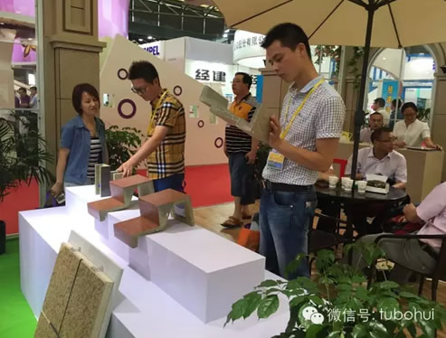 固克涂料集團旗下高端品牌“天工石”,其作為仿真石外墻裝飾保溫系統(tǒng)首選品牌,以仿歐建筑的風(fēng)格、超越石材的新材料、新工藝亮相上海,全方位展示品牌實力,博得贊譽的同時,吸引眾多專業(yè)觀眾駐足參觀咨詢,也更成功吸引海內(nèi)外客商的關(guān)注。技術(shù)與工藝的融合,源于石材,勝于石材,天工石以其卓越的環(huán)保節(jié)能特性超越石材,開啟了低碳生活新時代,實現(xiàn)建筑與城市和諧相融,為客戶打造綠色建筑、綠色裝飾保駕護航。
