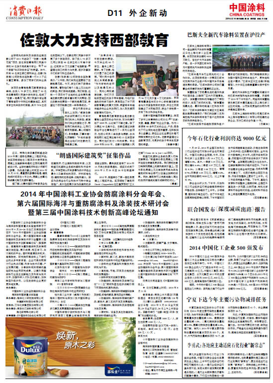 中國涂料報 2014年8月14日 星期四